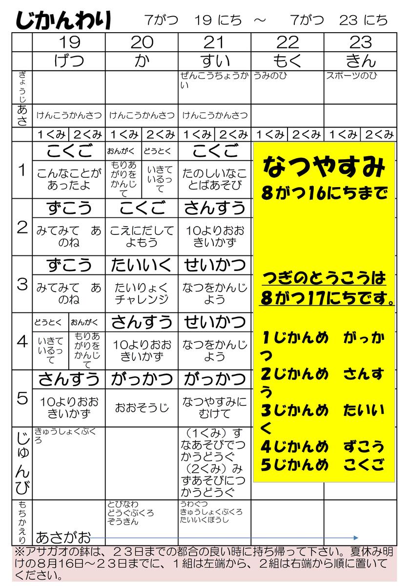 1コマ目 平日 1600〜1645 算数a 国語a 土曜 下記、いずれかの時間 1330〜1415;一年生の時間割におどろきました 小学校で配布された時間割におどろきました。 シンプルな表ですが、これにはもう一枚プリントが添えられていて、 学校で保管しているので用意する必要のない教科や、 同じ「こくご」でも持ち物が異なることの説明ここから本文です。 掲載開始日:年4月14日 最終更新日:年7月22日 家庭学習の時間割を決めましょう(小学校向け) (かてい
